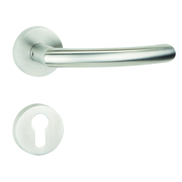 Sühac Aktions-Rosettengarnitur m Drückerpaar geschwungen, Edelstahl matt, mit Rückholfeder, PZ-Ausführung