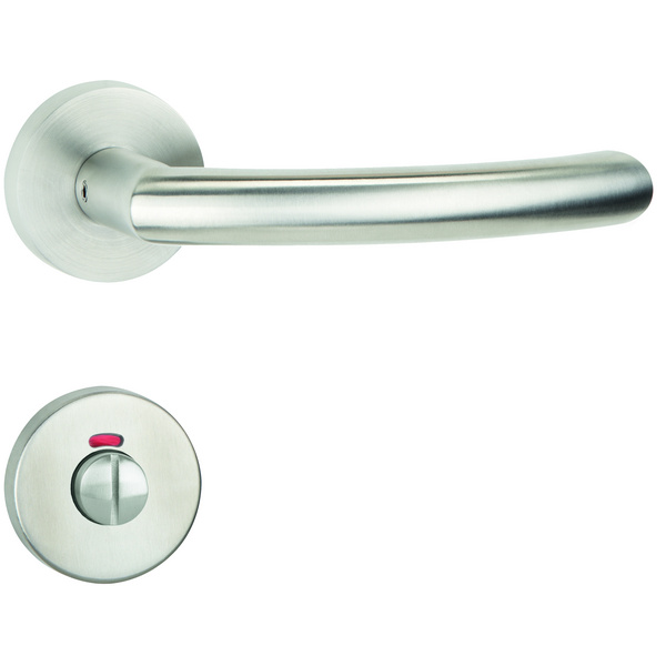Sühac Aktions-Rosettengarnitur m Drückerpaar geschwungen, Edelstahl matt, mit Rückholfeder, WC-Ausführung