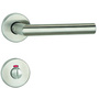 Sühac Aktions-Rosettengarnitur m Drückerpaar in L-Form, Edelstahl matt, mit Rückholfeder, WC-Ausführung